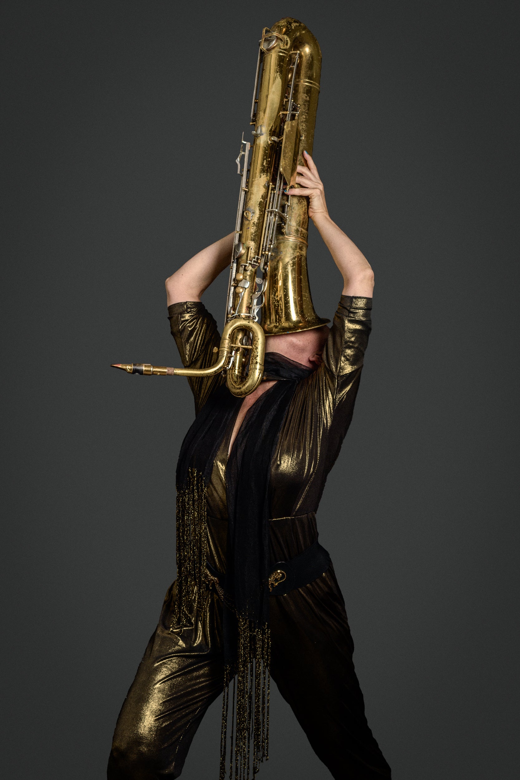 Paula Henderson Baritone Saxophone Instrumenthead. Burnt Sugar, Nick Waterhouse, C.W. Stoneking, Rev. Vince Anderson and the Love Choir, Moisturizer. Brooklyn, 2016.